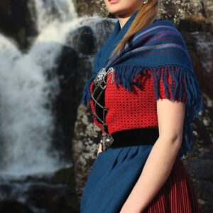Adult skirt fabric is made of 80% wool, 15% cotton, and 5% polyester.