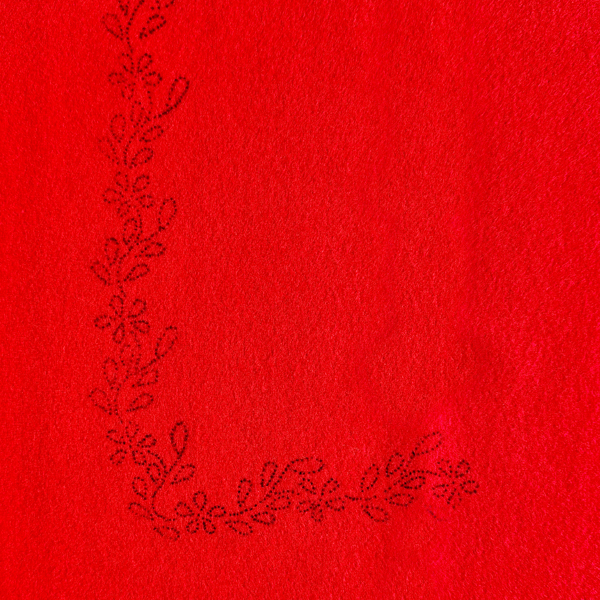 Skarlak áteknað vestastykki. Mynstur nr. 41. Stykkið er nóg stórt til ein vanligan mann.